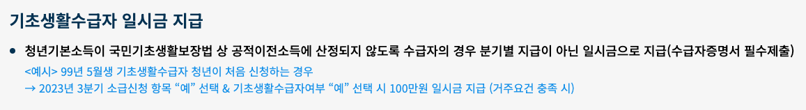 기초생활수급자라면 이 역시 체크해서 분기별이 지급이 아닌 일시금으로 지급 받을 수 있습니다.