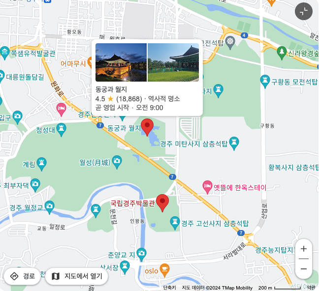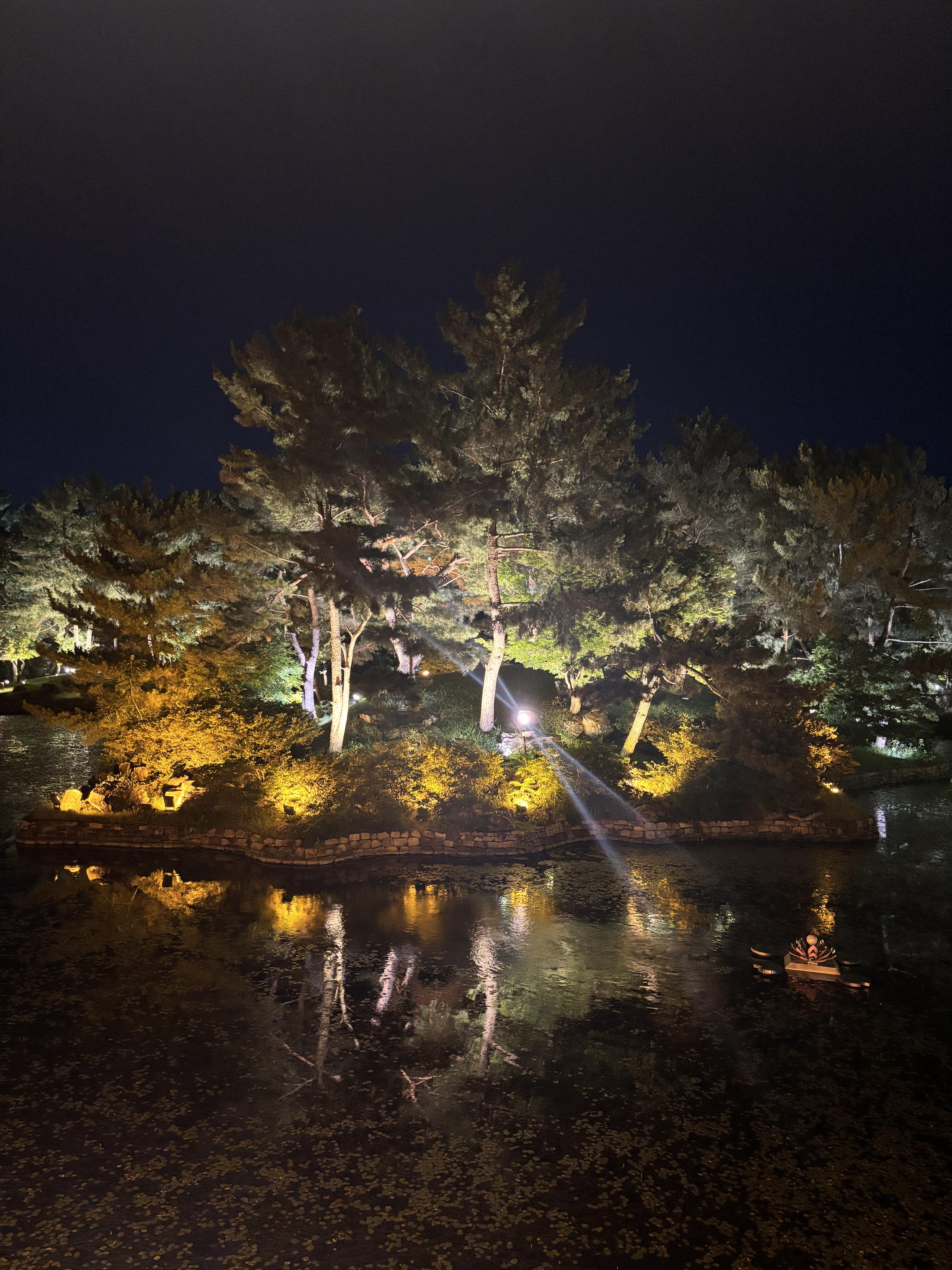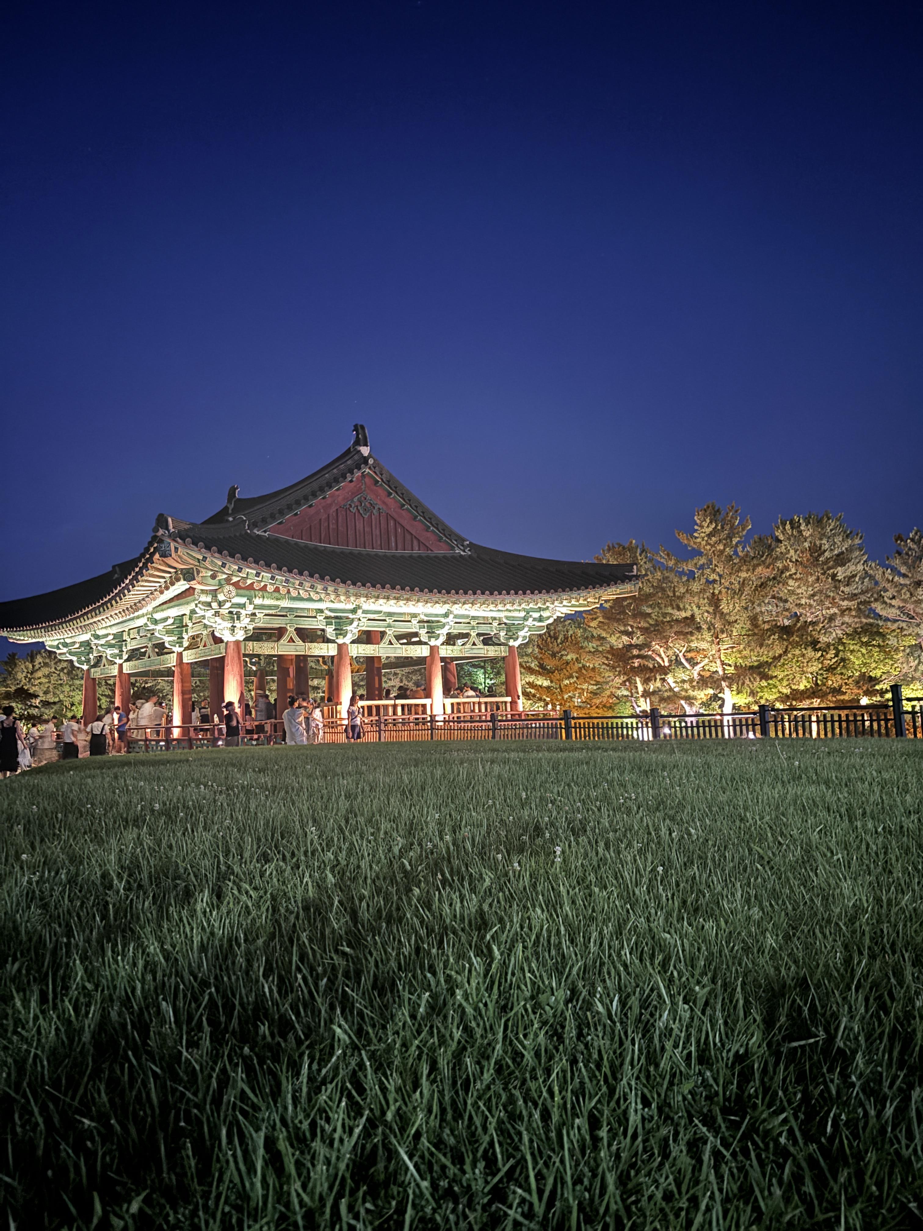 다음으로 가야할 곳은 '동궁과 월지'입니다. 이곳부터는 반드시 해가 진 뒤에 가실 것을 추천합니다. 물론 낮에도 방문하실 수 있지만 동궁과 월지의 밤낮의 풍경은 확연히 다릅니다. 이 7세기의 연못과 궁전은 해가 진 뒤 조명 아래서 더욱 아름답습니다.