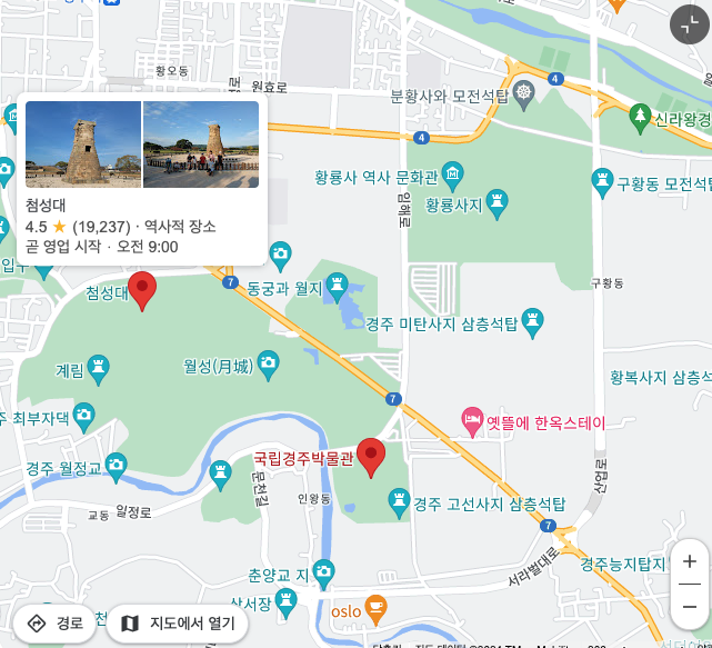 마지막으로 가야할 코스는 동궁과 월지에서 나와 도보로 10분~15분, 차로는 5분 내외에 있는 첨성대입니다. 누군가 낮에 본 첨성대는 그냥 돌덩이였는데, 밤에 본 첨성대는 핫플레이스라고 했습니다. 그만큼 첨성대를 보고 느끼는 감흥은 낮과 밤의 차이가 큽니다.