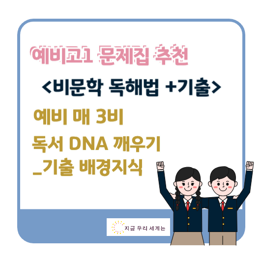 독서(비문학) 문제를 한 권 더 추천한다면 '수능 국어 독서 DNA 깨우기'를 추천합니다. 이 교재 시리즈 중 특히 1권 '배경지식' 교재는 다양한 주제의 비문학 기출을 읽을 때 도움이 되는 배경지식도 함께 정리할 수 있게 구성되어 비문학에 첫발을 내딛는 학생들에게 많은 도움이 될 것입니다.