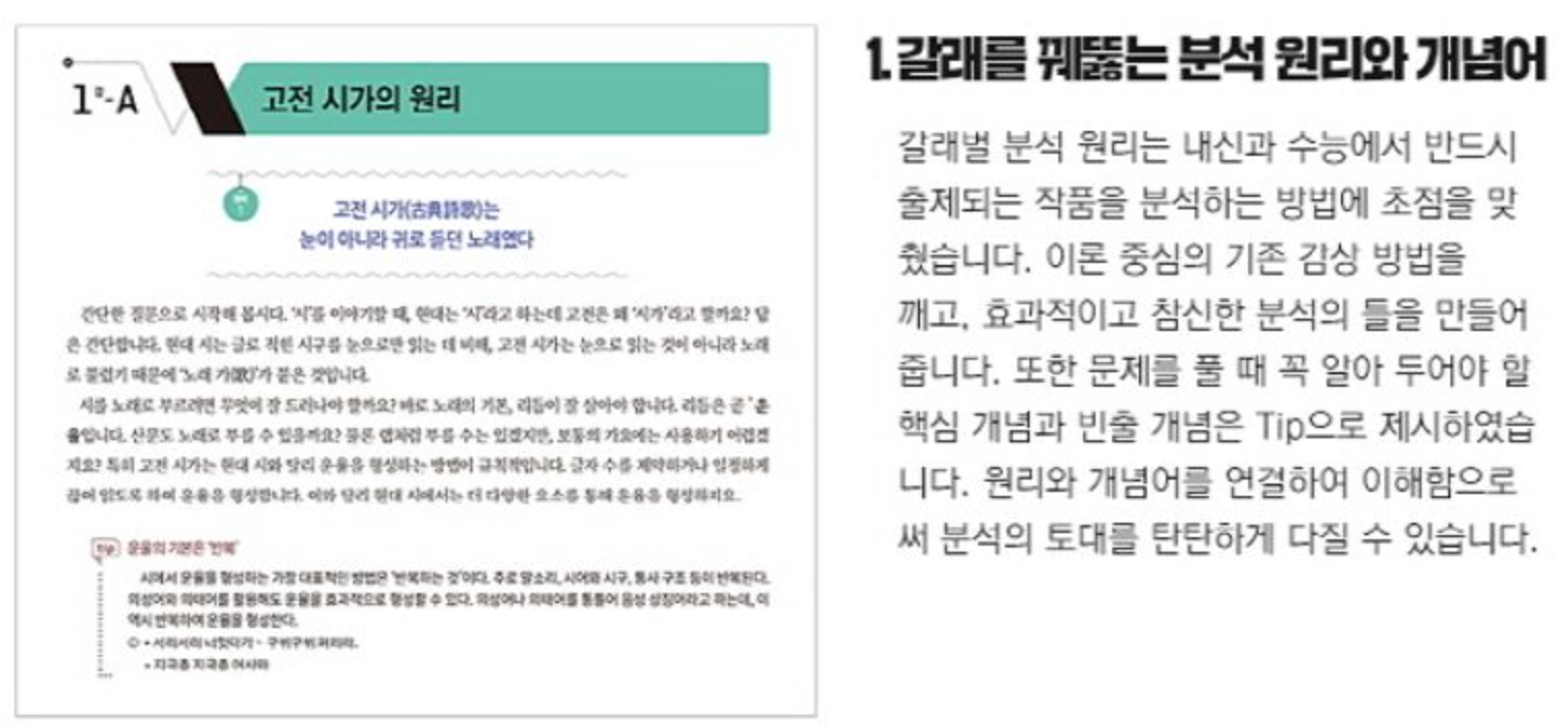 문학 영역에서는 '더 개념 블랙라벨 국어 문학'이라는 교재도 괜찮습니다. 이 책에는 작품 분석 원리 및 문학 개념 정리도 꼼꼼하게 수록되어 있습니다. 또 선택형 문제뿐만 아니라 OX 문제도 있어서 내용과 형식에 대해 정확히 알고 있는지 확인할 수도 있습니다.