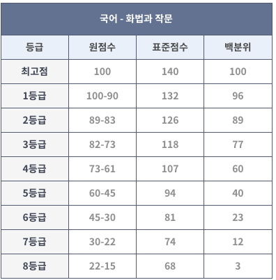 언매의 경우 1등급이 88점까지, 화법과 작문은 90점이 1등급 컷이었습니다.