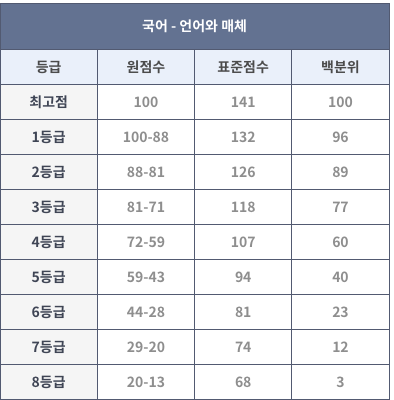 언매의 경우 1등급이 88점까지, 화법과 작문은 90점이 1등급 컷이었습니다.