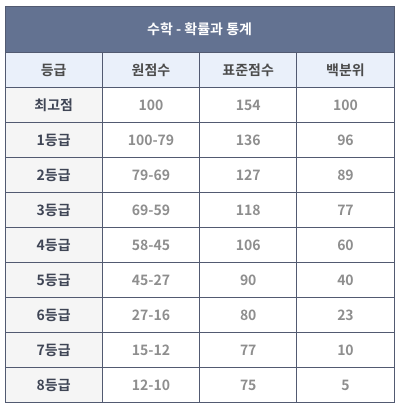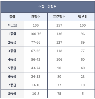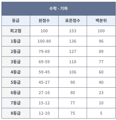 따라서 시험 이후 성적표에서 등급만 확인하지 말고 영역별 백분위를 확인해서 지원 가능한 대학을 따져봐야 합니다.