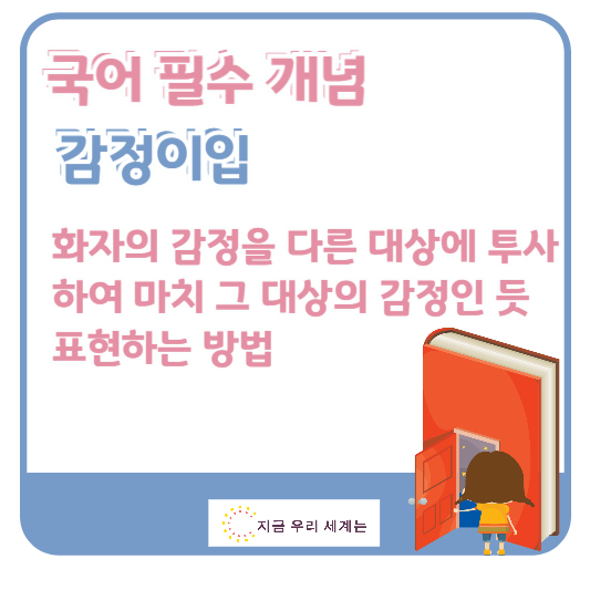 '감정이입'은 문학 개념어 중 학생들이 많이 헷갈려 하는 개념 중 하나입니다. 수능이나 모의고사에서 자주 등장하지 않지만 국어 내신에서는 자주 나오는 개념입니다.
