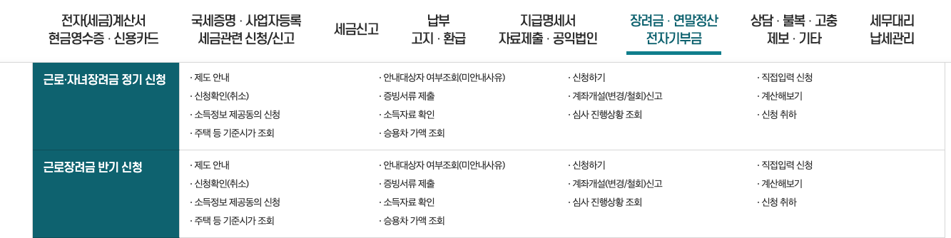 근로 장려금 신청하시려면 국세청 홈텍스로 가셔서 신청하실 수 있습니다.