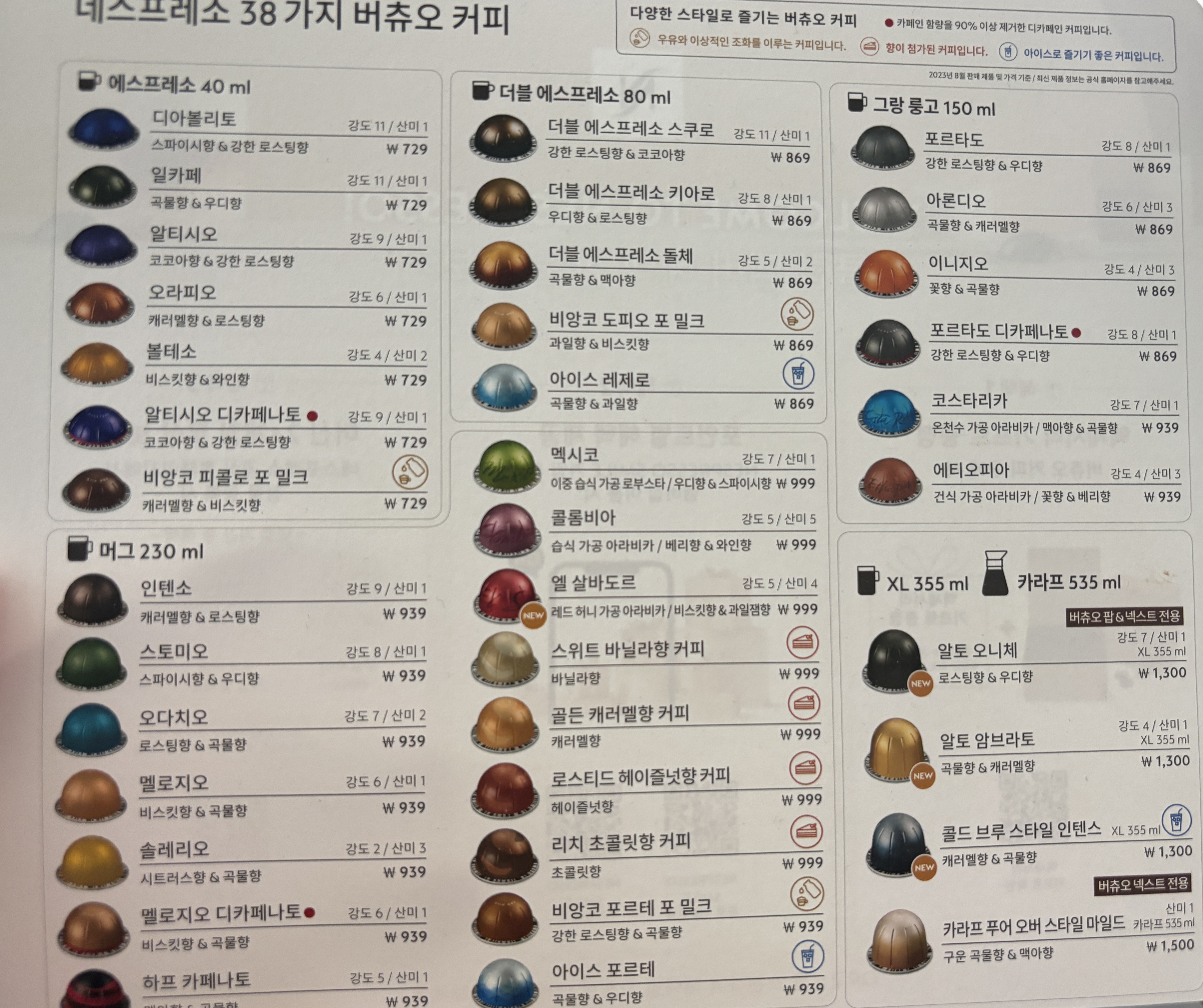 버츄오 플러스는 38가지 다른 스타일의 커피 캡슐을 판매하고 있는데요 그만큼 다양한 맛의 커피를 취향에 따라 즐길 수 있다는 것이 장점입니다. 그런데 처음 사용하시는 분들은 어떤 캡슐이 본인의 취향인지 캡슐 메뉴만 보고 판단하기 어려운데요 다음 용어들만 참고 하셔도 본인 취향에 맞는 캡슐을 선택하실 수 있을 겁니다.