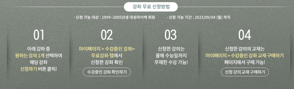 대성 마이맥 강의 무료 제공 신청 기간 및 방법