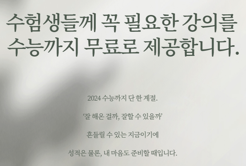 그 동안 수강하지 않았던 영역이라면 이번 기회에 수강하여 보다 안정적이고 효율적인 수능 준비를 할 수도 있겠습니다.