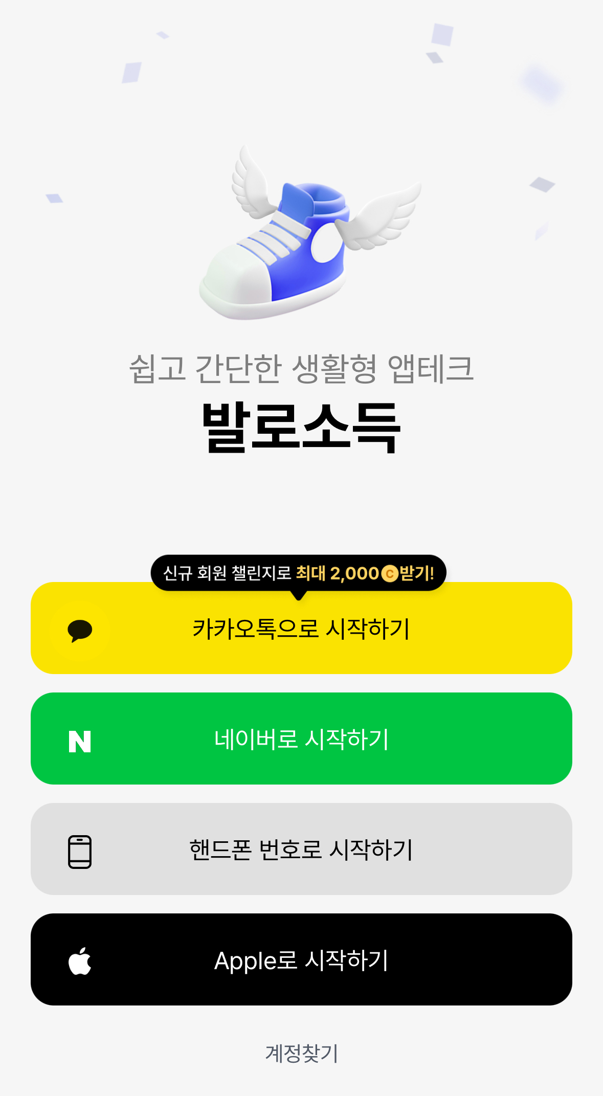 어플 설치 후 카카오톡이나 네이버 등으로 간단하게 가입 후 앱 테크 시작하실 수 있습니다.