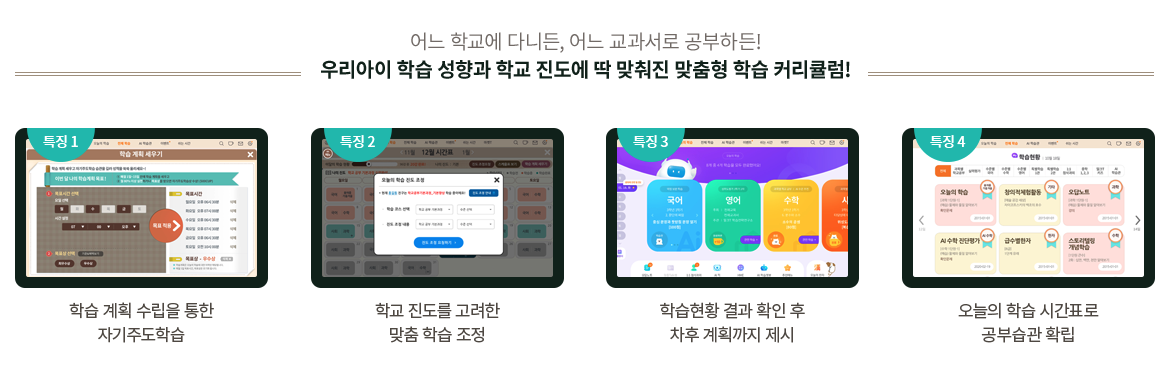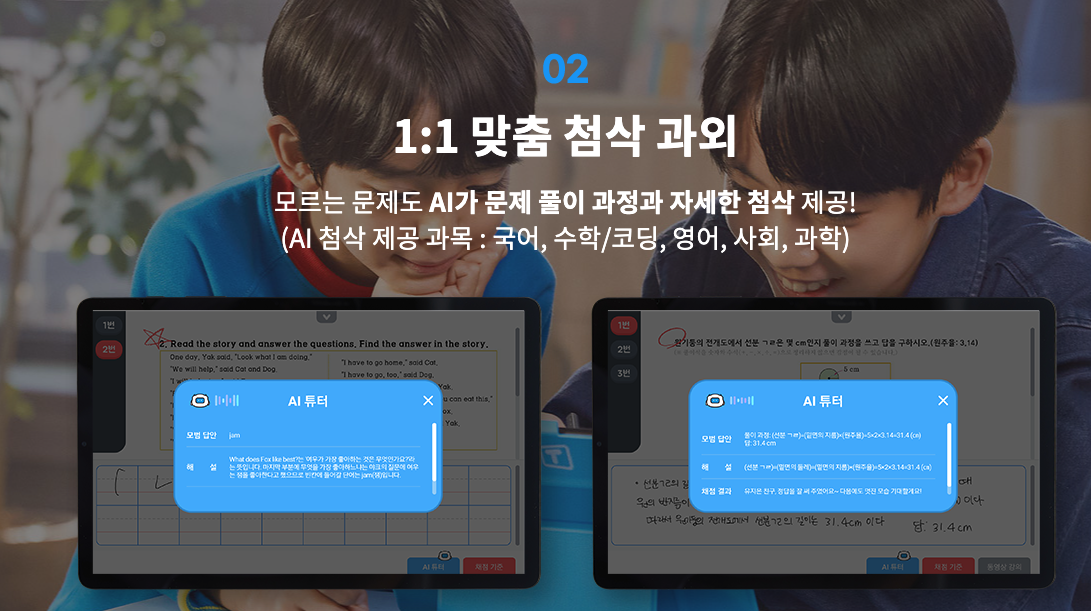 전용 학습기와 교재가 제공되고 1:1 선생님 관리, 학부모 정보 플랫폼을 이용하실 수 있습니다.