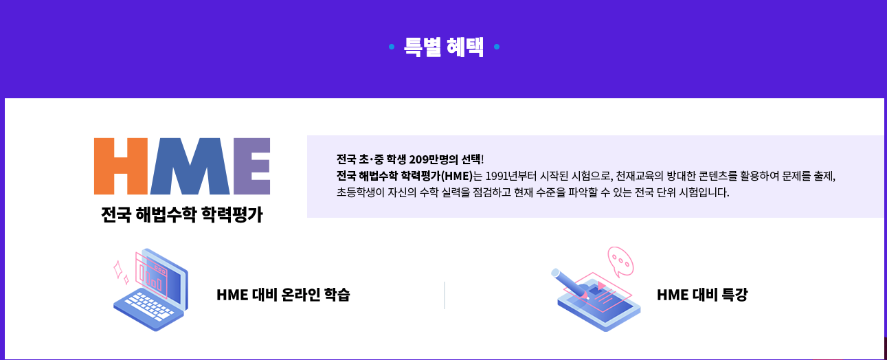 거기에 특별혜택으로 해법수학 학력평가에 관련된 학습을 할 수 있습니다.