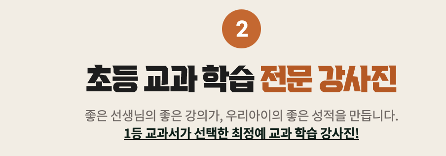 그 다음으로 밀크T는 초등 교과 학습 전문 강사진을 내세웁니다.
