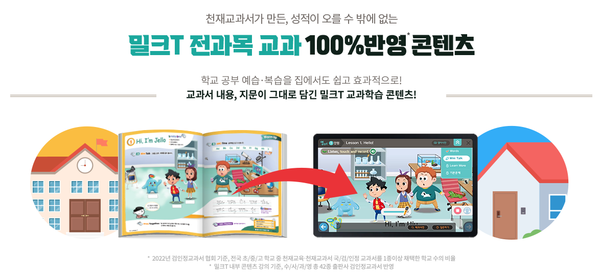 교과서 지문 그대로 밀크T 학습 콘텐츠를 구성했다고 하니 자연스럽게 복습 효과도 있을 겁니다.