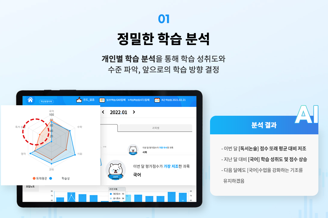 이를 위해 학생에 대한 세밀한 평가, 분석, 진단이 진행됩니다.
