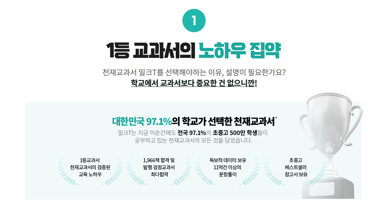 다수의 교과서를 출판하고 있기 때문에 교과서 중심의 실질적이고 효율적인 학습이 가능하다는 것이지요