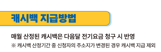 게뱔 세대의 매달 이와 같이 산정된 캐시백은 다음 달 전기 요금 청구 시 반영되어 지급됩니다.