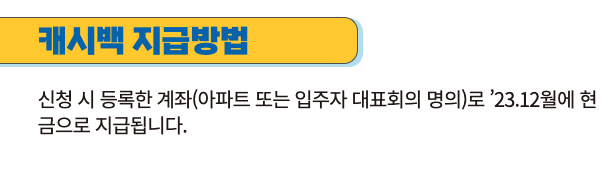 공동 주택 관리자가 에너지 캐시백을 신청한 경우 아파트 혹은 입주자 대표회의 명의의 통장으로 현금이 지급된다고 합니다.