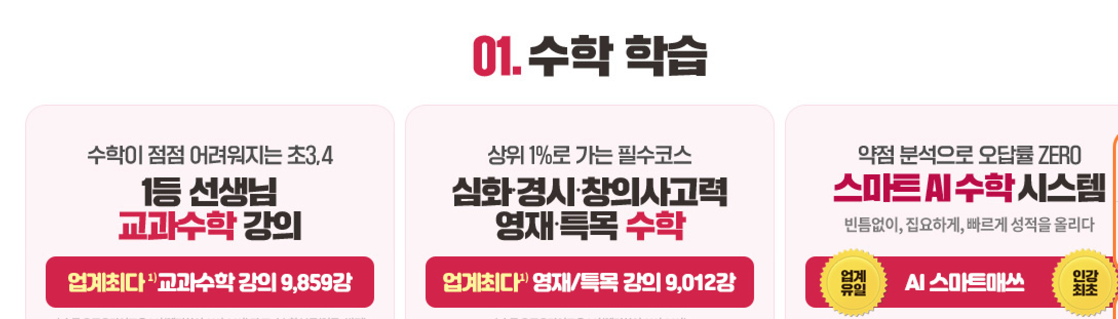 과목별로는 수학 영어 국어가 중심이 됩니다.