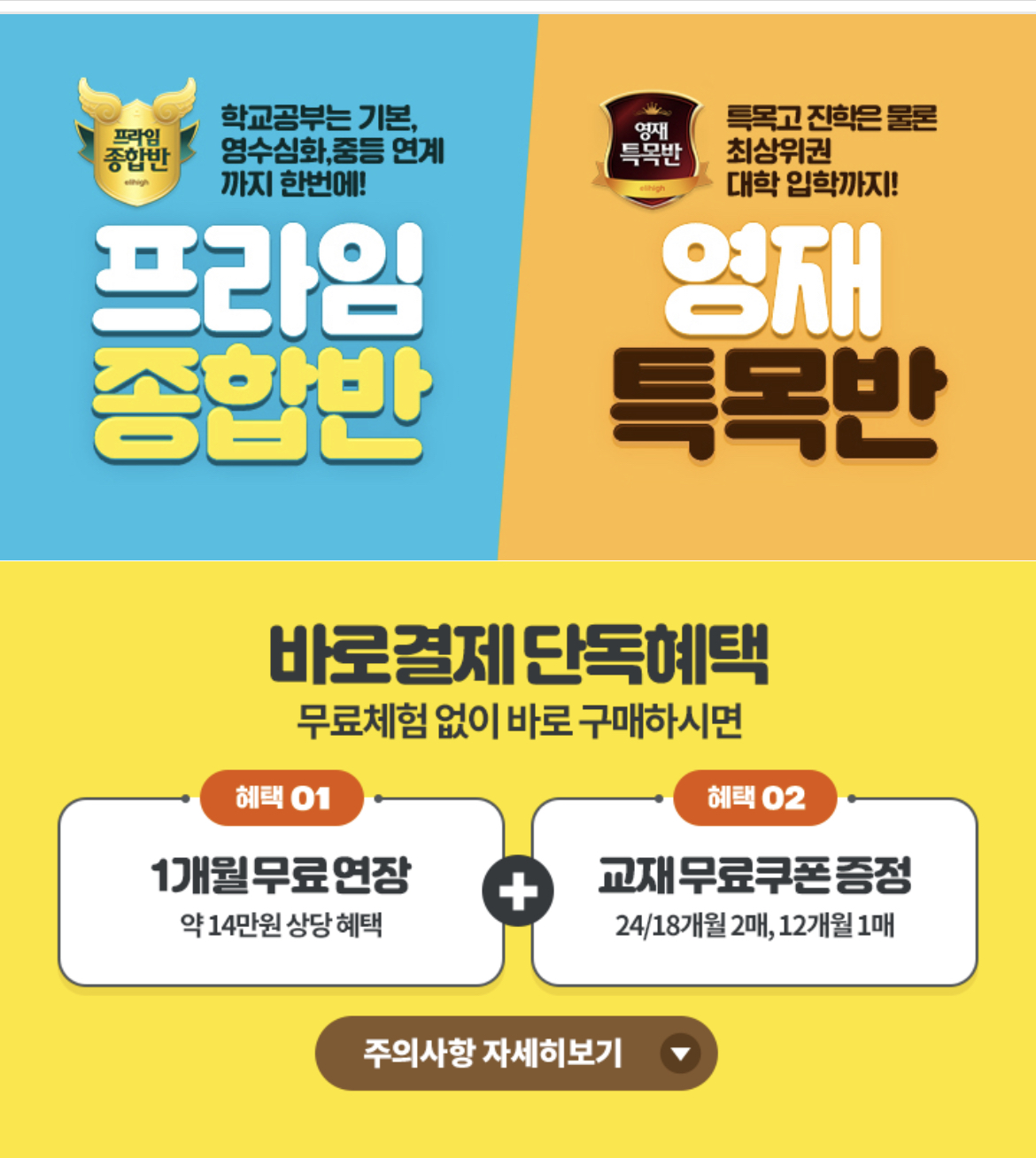 수강 방식은 프라임 종합반으로 수강하는 방식과 영재 특목반으로 신청하는 방식 중 하나를 선택하면 됩니다.