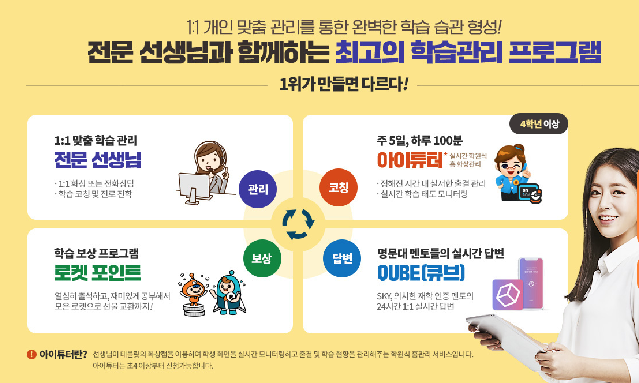거기에 더해 초등학교 4학년부터는 '아이튜터'라는 '방법'으로 실시간학생의 학습을 화상으로 관리해준다고 하니 '학생 관리'의 질이 더 높아진듯 합니다.