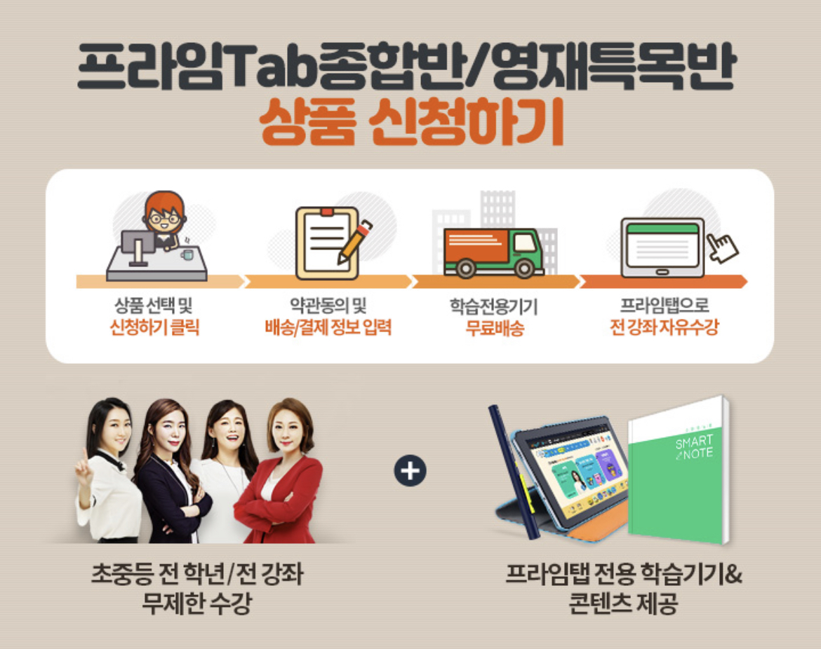 수강 신청이 완료되면 학습 전용기기인 프라임탭을 받아 전 강좌를 자유롭게 수강할 수 있습니다