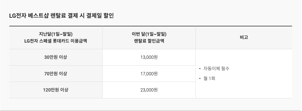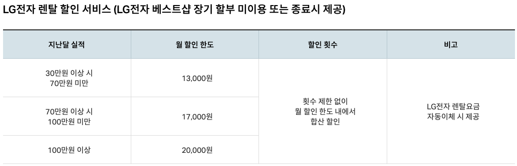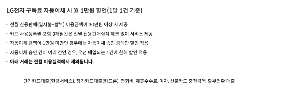 엘지 구독료 할인 카드 정리