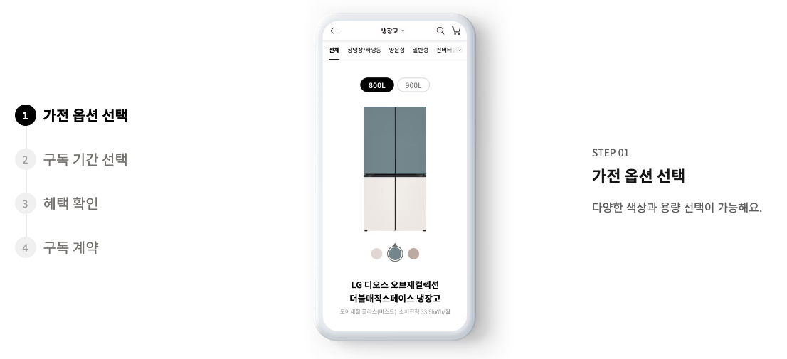 엘지 가전 구독은 원하는 가전 제품을 합리적으로 소비하는 방법입니다. 흔히 렌탈하시는 정수기 같은 소형 가전부터 냉장고 에어컨 같은 대형까지 엘지 전자의 다양한 가전 제품을 구매하지 않고 '구독'하여 이용하실 수 있습니다.