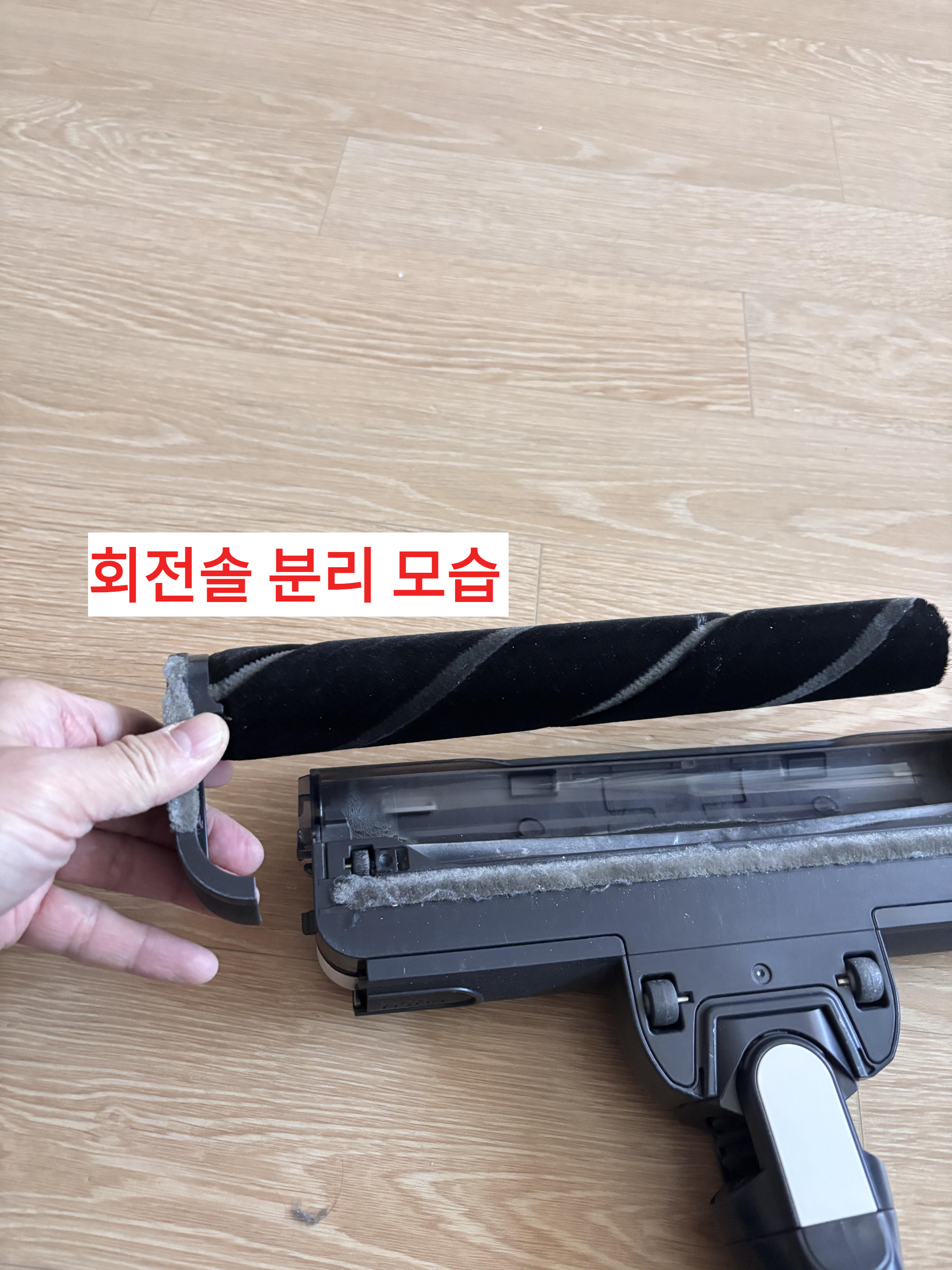 회전솔을 분리한 후에는 회전솔 상태를 확인하고 청소해줍니다.