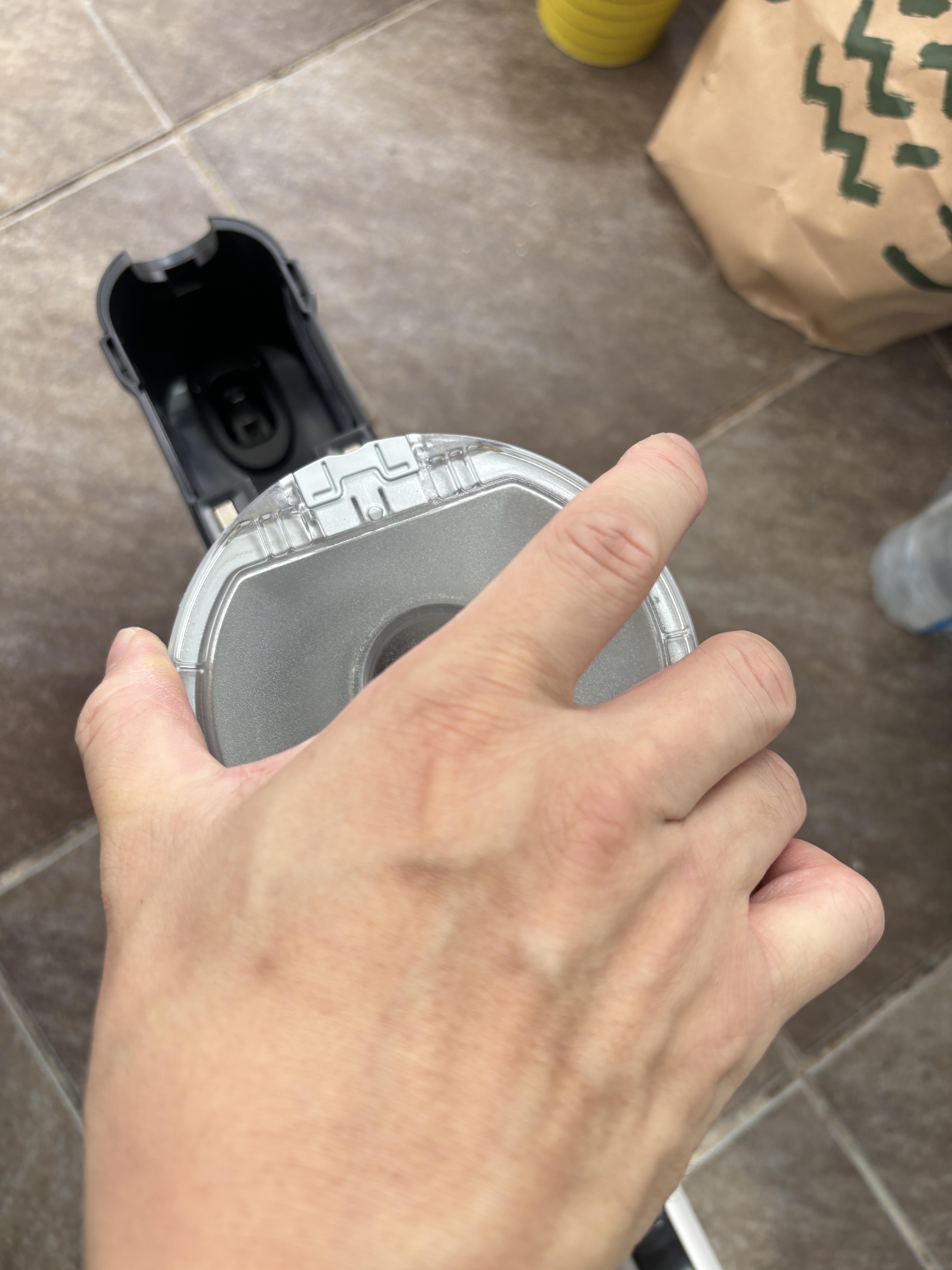 위 사진은 설명을 잘못 이해하고 투명한 부분을 돌리고 열어 버린 뒤에 만난 처참한 광경입니다. 저 부분을 여시면 먼지와 머리카락 뭉치들을 만나게 됩니다. 굉장히 당혹스럽습니다.