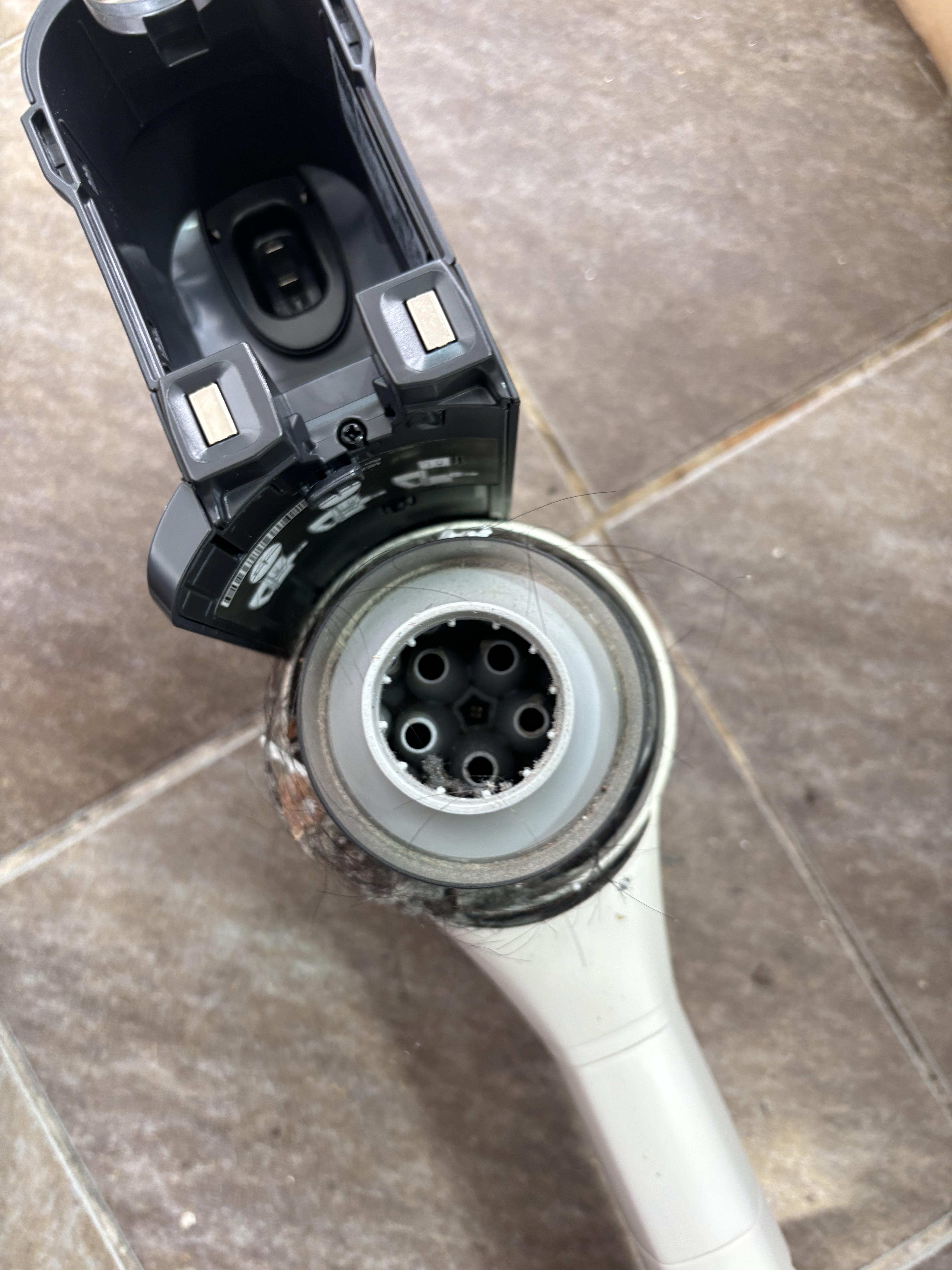 만약 필터를 물로 청소했다면 확실하게 건조한 뒤 사용해야 합니다. 최소 24시간 이상 건조하기를 권합니다. 물기가 남아 있는 경우 모터가 손상되거나 냄새가 날 수도 있다고 합니다. 저는 물 청소는 다음을 기약하고 2 in 1 흡입구를 이용 먼지를 제거했습니다.