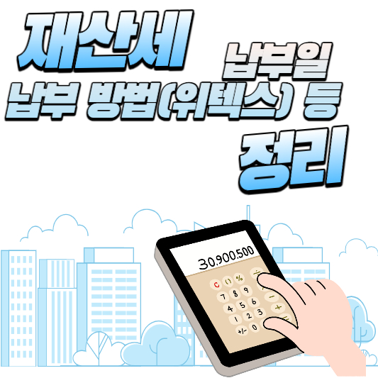 재산세는 땅이나 집, 건물 등 재산을 보유한 사람이 내는 세금입니다. 이번 포스팅에서는 재산세 납부일, 납부방법(위텍스) 등을 정리해 드리겠습니다.