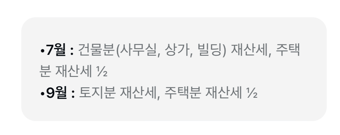 주택의 경우 세금 납부 부담을 줄이기 위해 1년치 재산세를 7월과 9월에 절반씩 나눠서 납부하게 되어 있습니다.