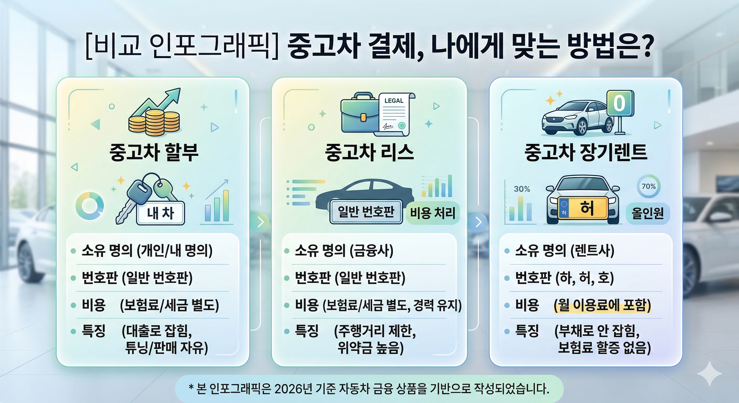 중고차 살 때 할부? 리스? 렌탈? 나한테 딱 맞는 구매 방법 찾기(2026년 최신판)