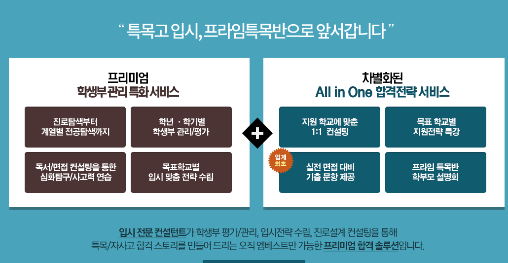 특목고 입시는 학생의 학업 능력 못지 않게 활동 이력 등이 합격을 좌우하기 때문에 그런 부분을 채워주는 듯합니다.