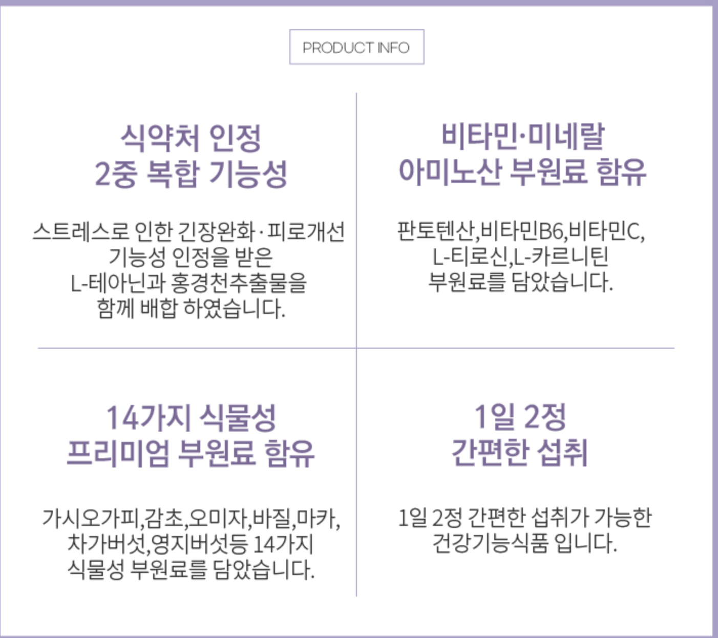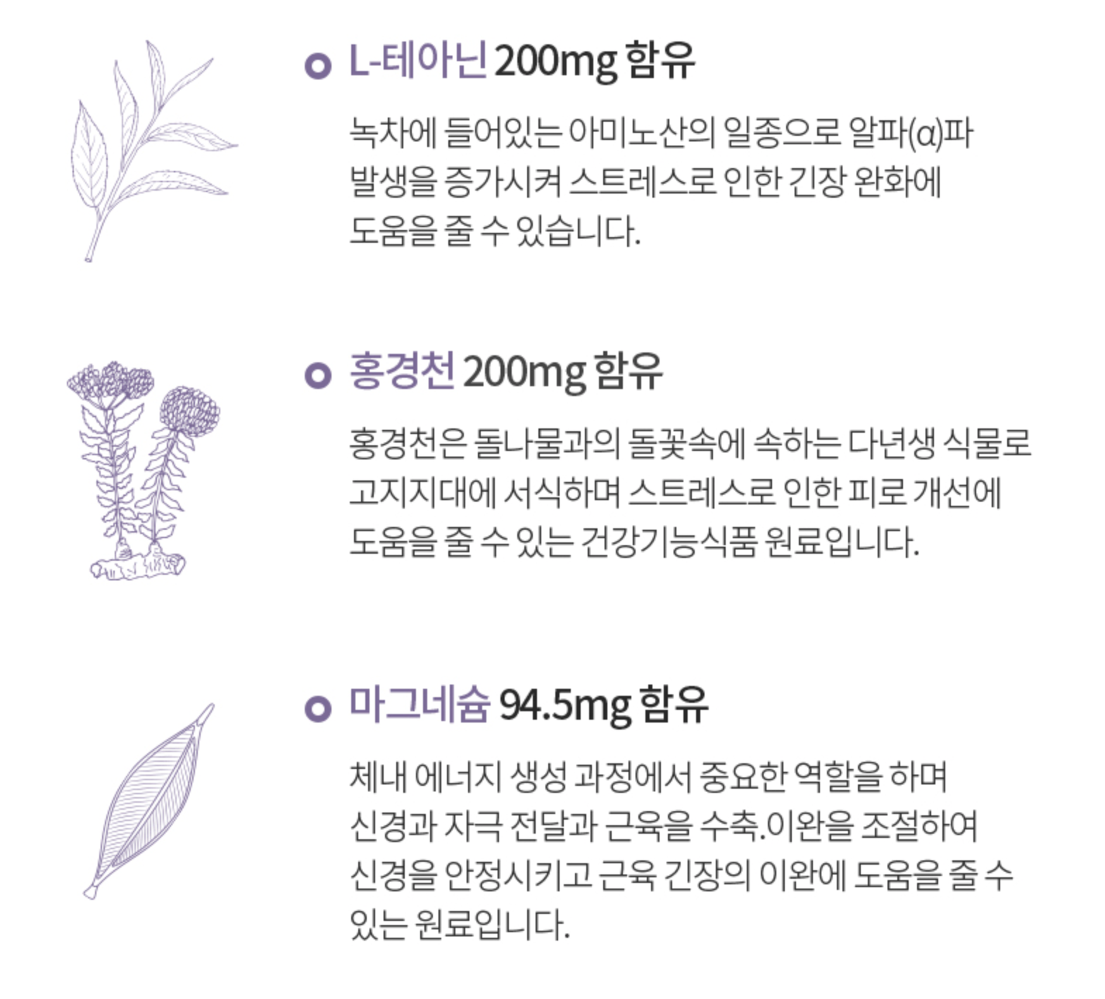 이 성분은 스트레스로 인한 긴장 완화에 도움을 줄 수 있다고 합니다.