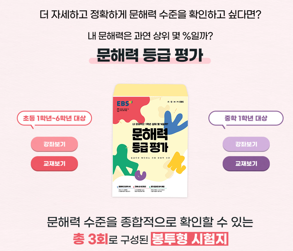 EBS 초등에서 문해력 테스트 해 보실 분들은 아래 링크로 바로 가시면 됩니다. (EBS 초등 문해력 테스트 하러 가기)