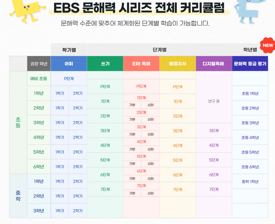 다음으로 소개해 드릴 사이트는 EBS 초등 사이트입니다. 사실 '문해력'에 대한 관심은 EBS에서 시작되었다고 할 수 있는데요 그만큼 보다 체계적으로 테스트와 결과에 따른 교재 및 강의까지 살펴 볼 수 있게 구성되어 있습니다.
