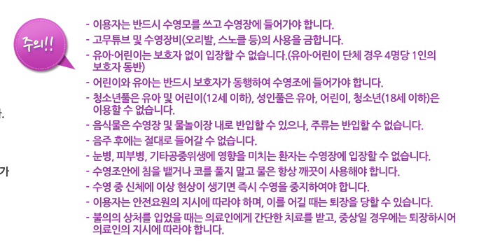 각각 연령대에 맞는 수영풀을 이용하셔야 합니다.