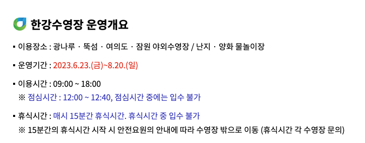 이상 한강 수영장 입장료 주요 시설 주차 등 이용에 관한 모든 것 정리해 보았습니다.