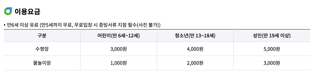 | 주요 시설 | 어린이풀, 청소년풀, 성인풀 에어바운스, 통돌이 등 놀이기구 |
