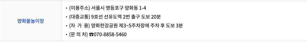 | 양화 물놀이장 위치 | 서울시 영등포구 양화동 1-4 |