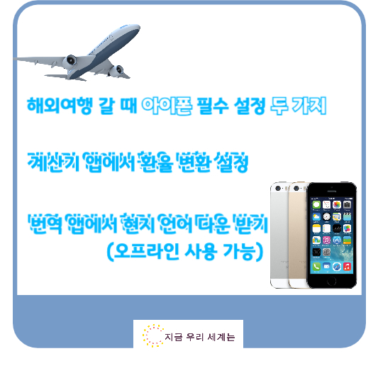 해외여행 가실 때 환율 계산 잘 안 되고, 말 안 통하는데 와이파이 느려서 번역기도 잘 돌아간 경험 있으신가요? 그런 경험 있으신 분들은 이제 해외여행 갈 때 아이폰에서 이 두 가지 설정 꼭 하고 가시기 바랍니다. 해외 자유 여행이 더 스마트해집니다. 그럼 해외여행 아이폰 필수 설정 두 가지 알려 드리겠습니다.