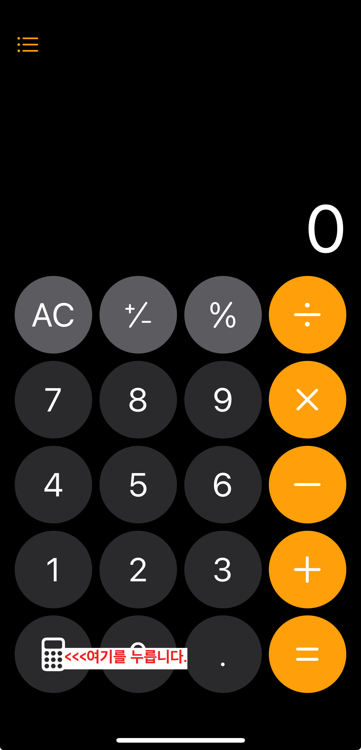 우선 아이폰의 계산기 앱을 실행합니다.