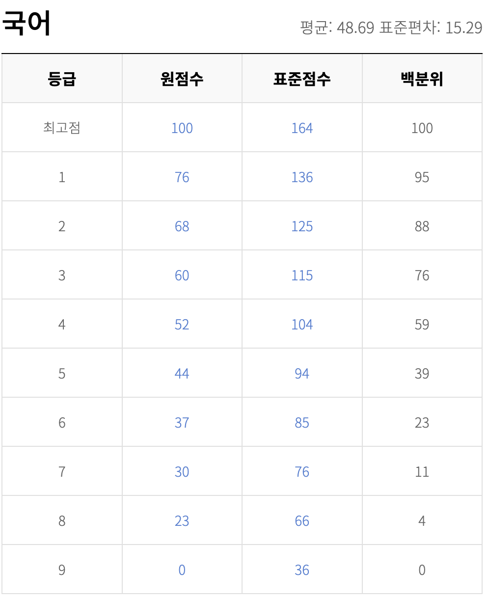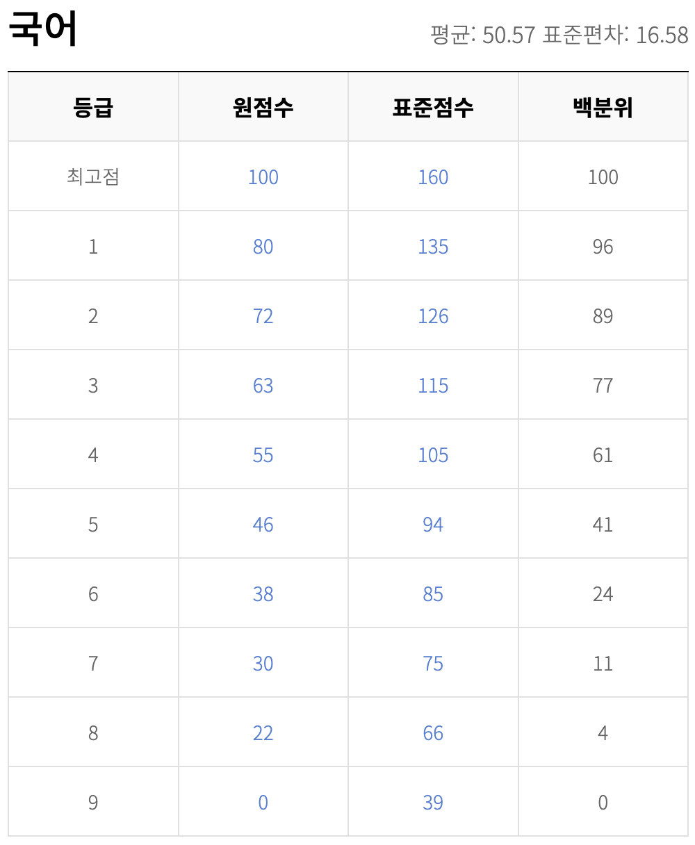 수능 시험은 한국사와 영어를 제외하고는 모든 과목이 상대 평가입니다. 그래서 시험 마다 등급을 가르는 점수대가 달라질 수 있습니다. 또 시험 결과로 전국에 있는 같은 학년 학생들과 비교 할 수 있습니다. 아래는 2022년과 2021년 고1 3월 모의고사 국어 영역의 등급컷입니다. 기출 문제를 풀고 채점하고 나서 확인하는 것이 좋겠습니다.