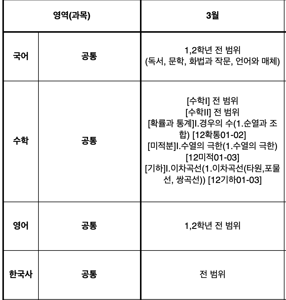 3월 모의고사 시험 범위