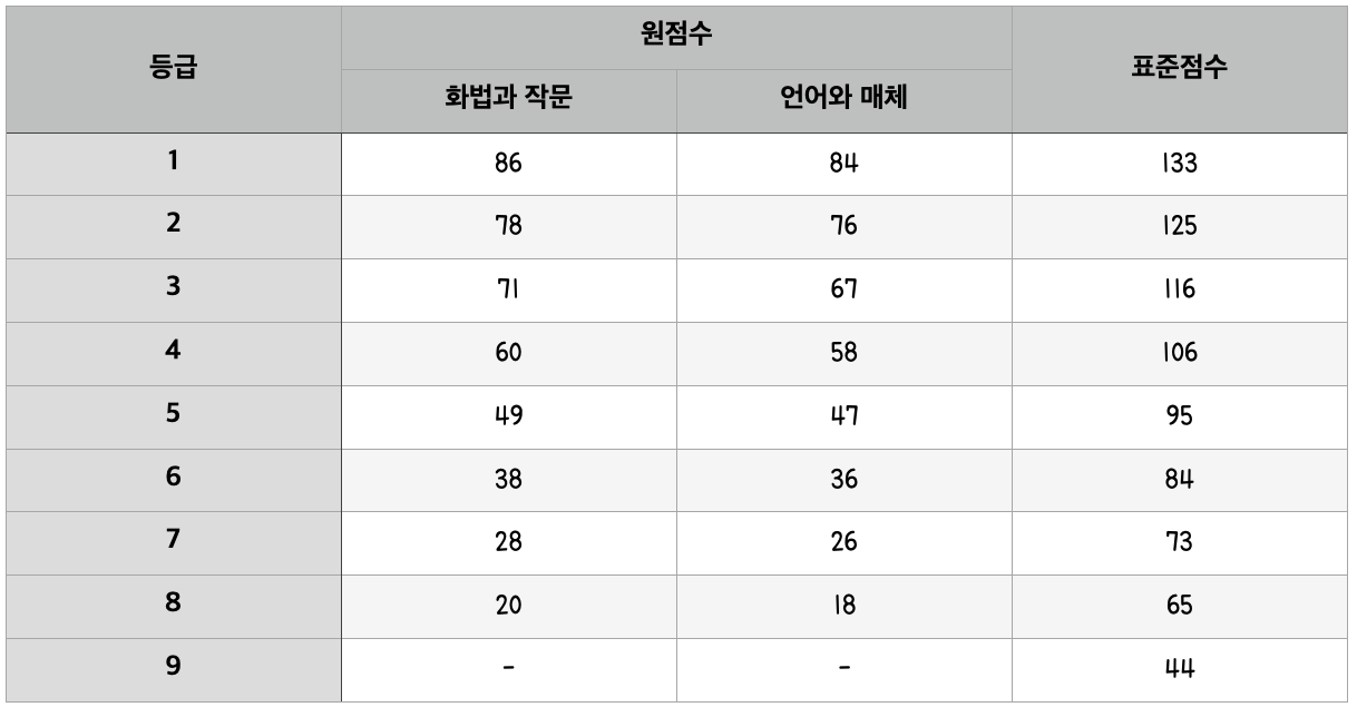 수능에서 국어는 1교시에 보는 만큼 중요한 과목인데요 2024년 고3 3월 모의고사 등급컷 원점수와 표준점수는 다음과 같습니다. 선택 영역 화법과 작문, 언어와 매체에 따라 확인하고 참고하시면 됩니다.