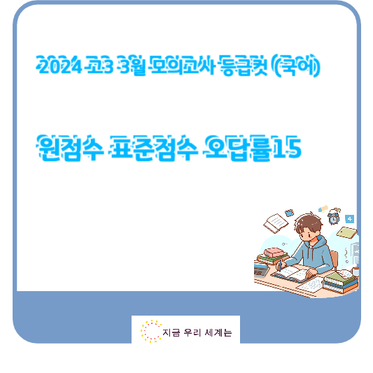 3월이 다가옵니다. 지난 겨울 열심히 공부한 고3 학생들은 긴장과 설렘 속에 3월 모의고사 보게될텐데요 그전에 2024년 고3 3월 모의고사 풀어보고 등급컷 원점수 표준점수 보면서 준비할 수 있겠습니다. 2024년 고3 3월 모의고사 등급컷 국어 원점수 표준점수에 오답률 상위 15문제도 알려 드립니다.