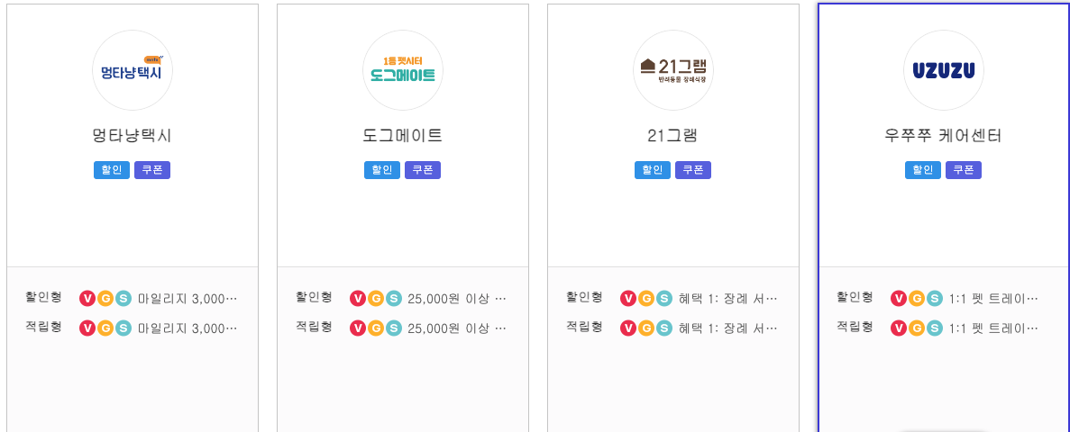 멍타냥 택시 같은 이동서비스에 우쭈쭈 케어센터 같은 반려동물 트레이닝 서비스까지