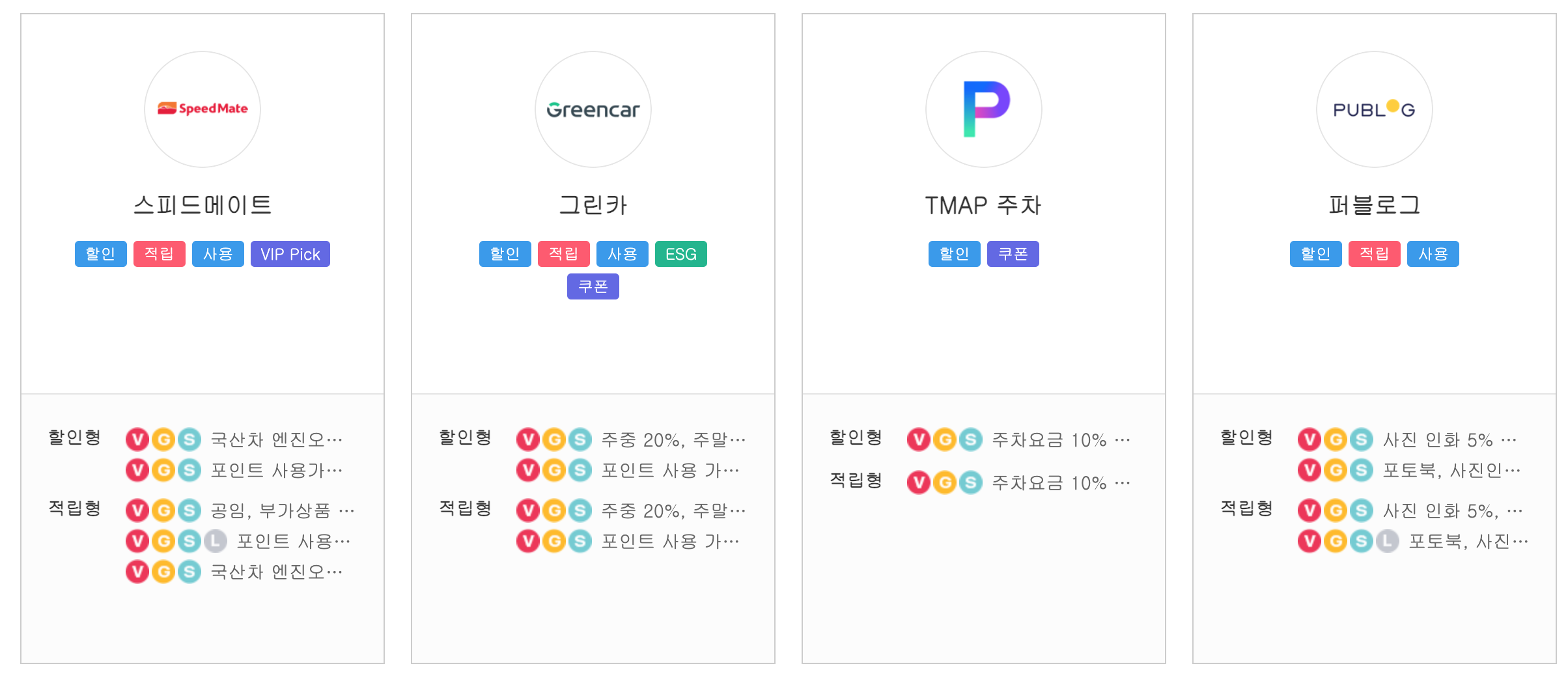자동차 정비(스피드메이트) 렌탈(그린카, 빌리카) 주차(티맵 주차)